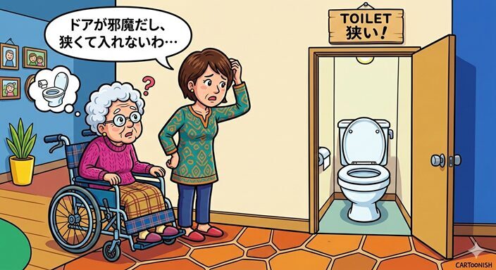 それにその開けた扉自体に、スペースを取られることは 介護を受けている親のみならず、介護者自身や車いすなどが ぶつかってしまったりなど、困る事も多々あるのです。